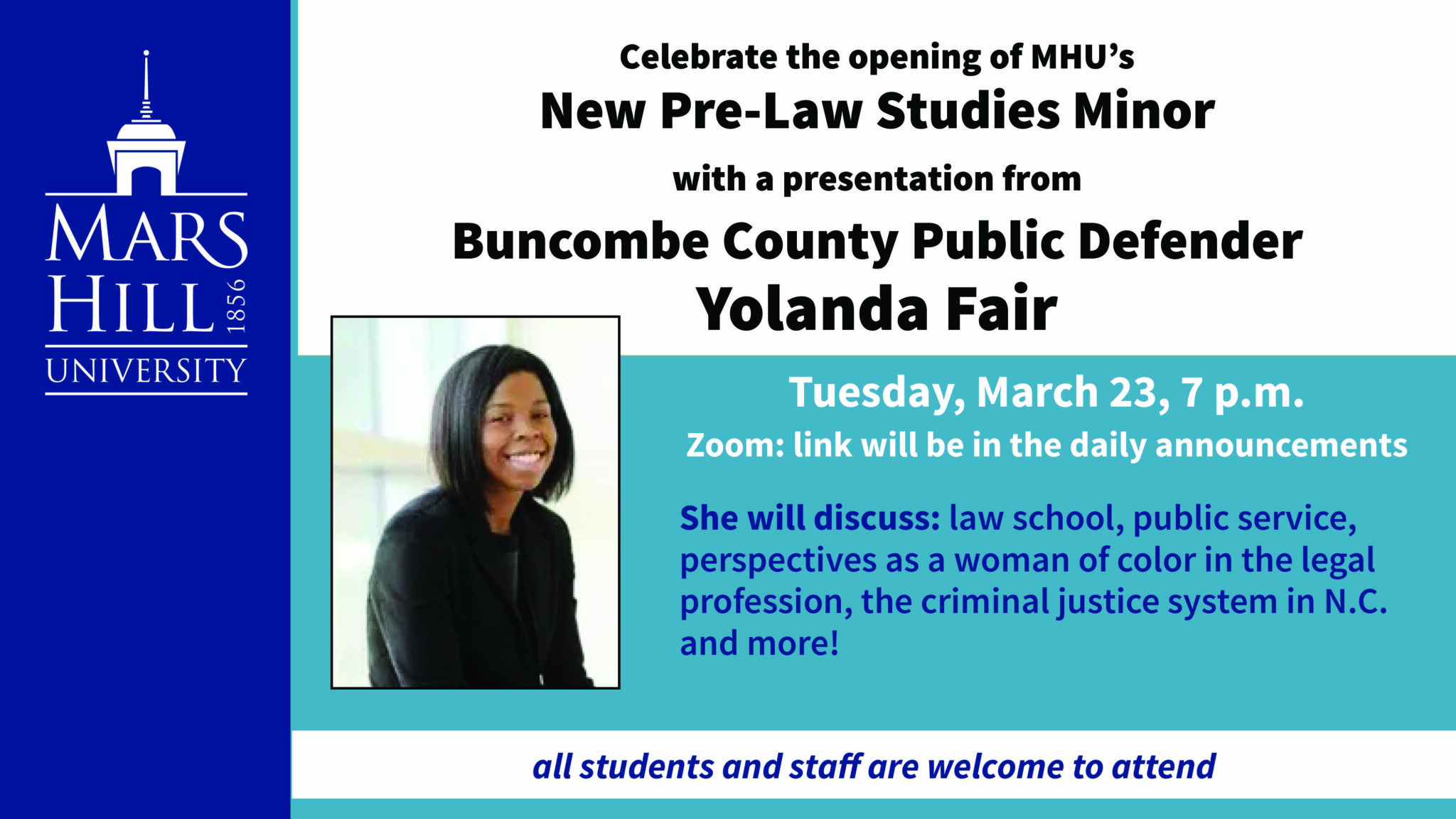 Pre Law Kickoff Special Guest Buncombe County Public Defender Yolanda Fair Mars Hill University