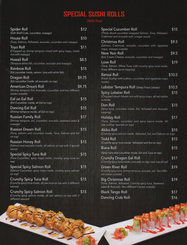 Toyo Japanese Sushi Bar Hibachi Sushi Menu