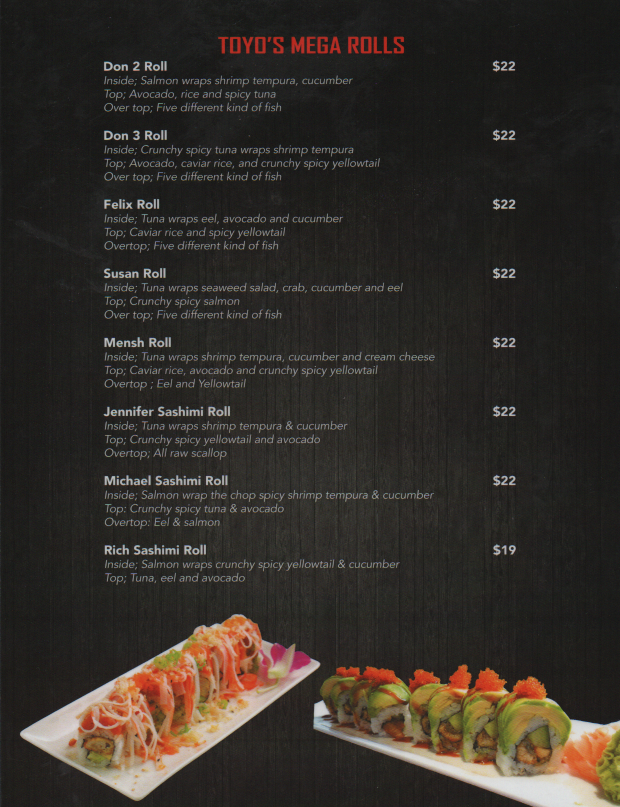 Menu No Stop Toyo Sushi Toyo Sushi Japanese Restaurant